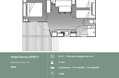 Mobil-home SIMPLY : 2 chambres + Terrasse intégrée + TV (25m²/2014)