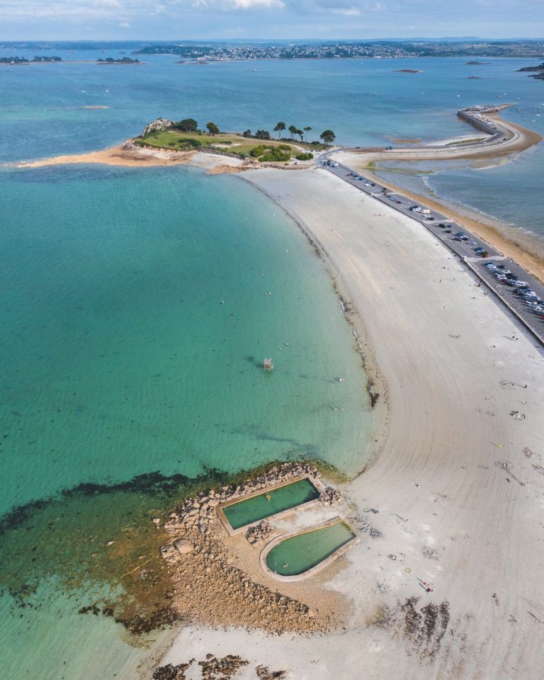 - Plage des Sables Blancs (Locquirec): bewaakt in het seizoen, een mooi familiestrand op de grens van Finistère en Côtes-d’Armor.